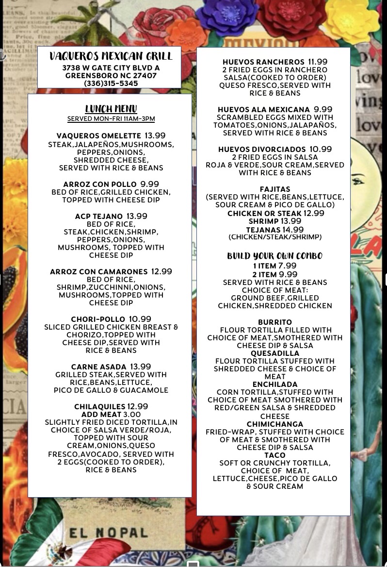 Introducing Vaquero's Mexican Grill, a culinary gem nestled in Greensboro, NC, at 3738 W Gate City Blvd A. This authentic Mexican restaurant is celebrated as a top choice in the Triad, where hearty portions promise to satisfy even the biggest appetites.